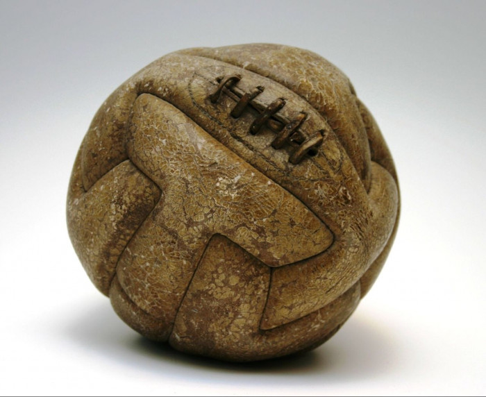 7. Pirmā futbola bumba. Negribētos ar tādu dabūt pa galvu!