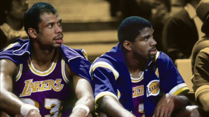 No 1980. līdz 1989. gadam ''Lakers'' rindās kopā nospēlēja arī Maģiskais Džonsons un Karīms Abduls-Džabars. Divi leģendāri spēlētāji, kuri tiek pieskaitīti pie visu laiku labākajiem basketbolistiem. Desmit sezonu laikā šie vīri kopā tika pie pieciem tituliem Džonsons sevi apliecināja kā teicamu saspēles vadītāju, kamēr Abduls-Džabars spēja darīt visu to, ko pasaules labākie garie spēlētāji.